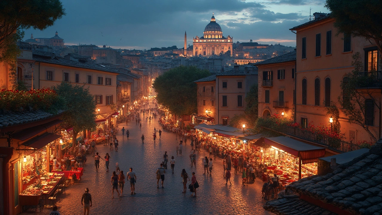 For an experience that feels like stepping back in time, wander into Rome's charming neighborhoods like Trastevere. At night, it becomes a hub of activity with locals enjoying aperitivos and lively street vendors setting up shop.